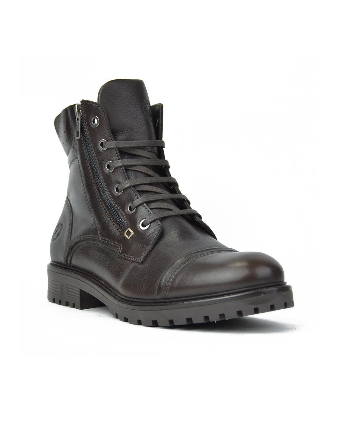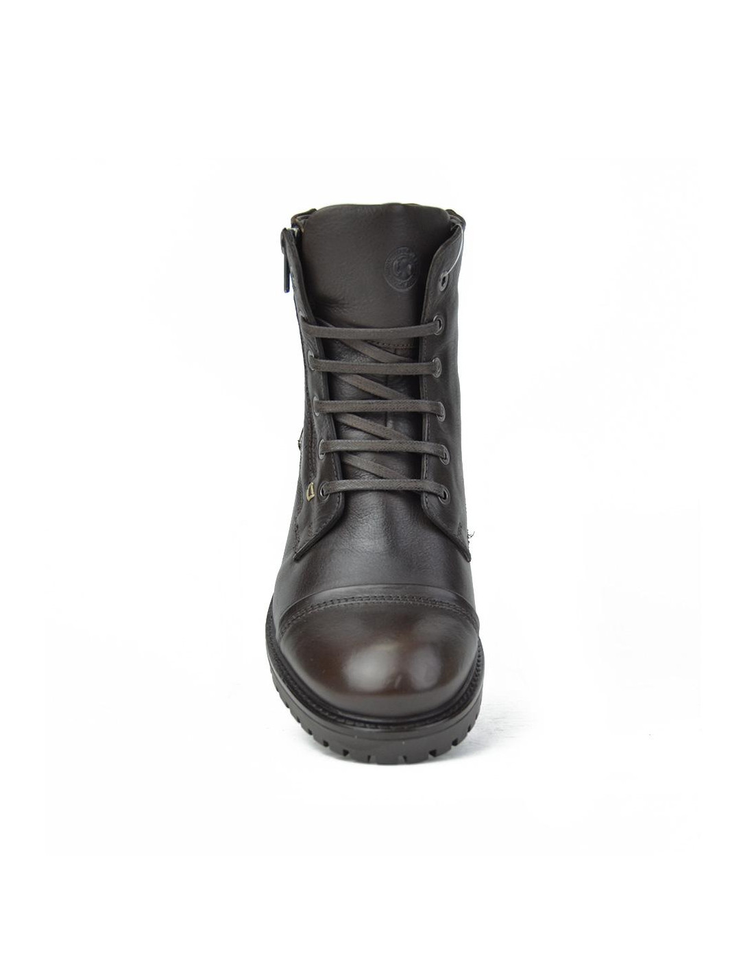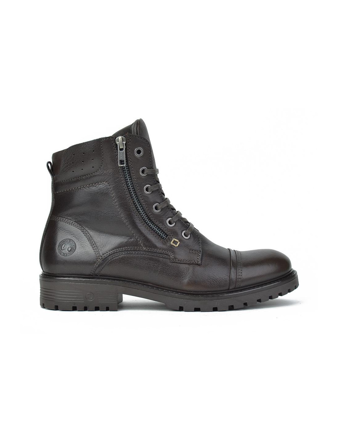 Botas caballero Coronel Tapiocca fabricadas en piel marrón, cierre de cordones y cremallera exterior, forro combinado piel vacuno y tejido, plantilla textil extraible termoconformada, caña de 14 cm altura, suela con tacón de 3,5 cm y plataforma de 1,5 cm, fabricadas en España. Composición: Empeine: Piel. Forro y plantilla: Textil. Suela: Fibra sintetica. Componente principal: Piel