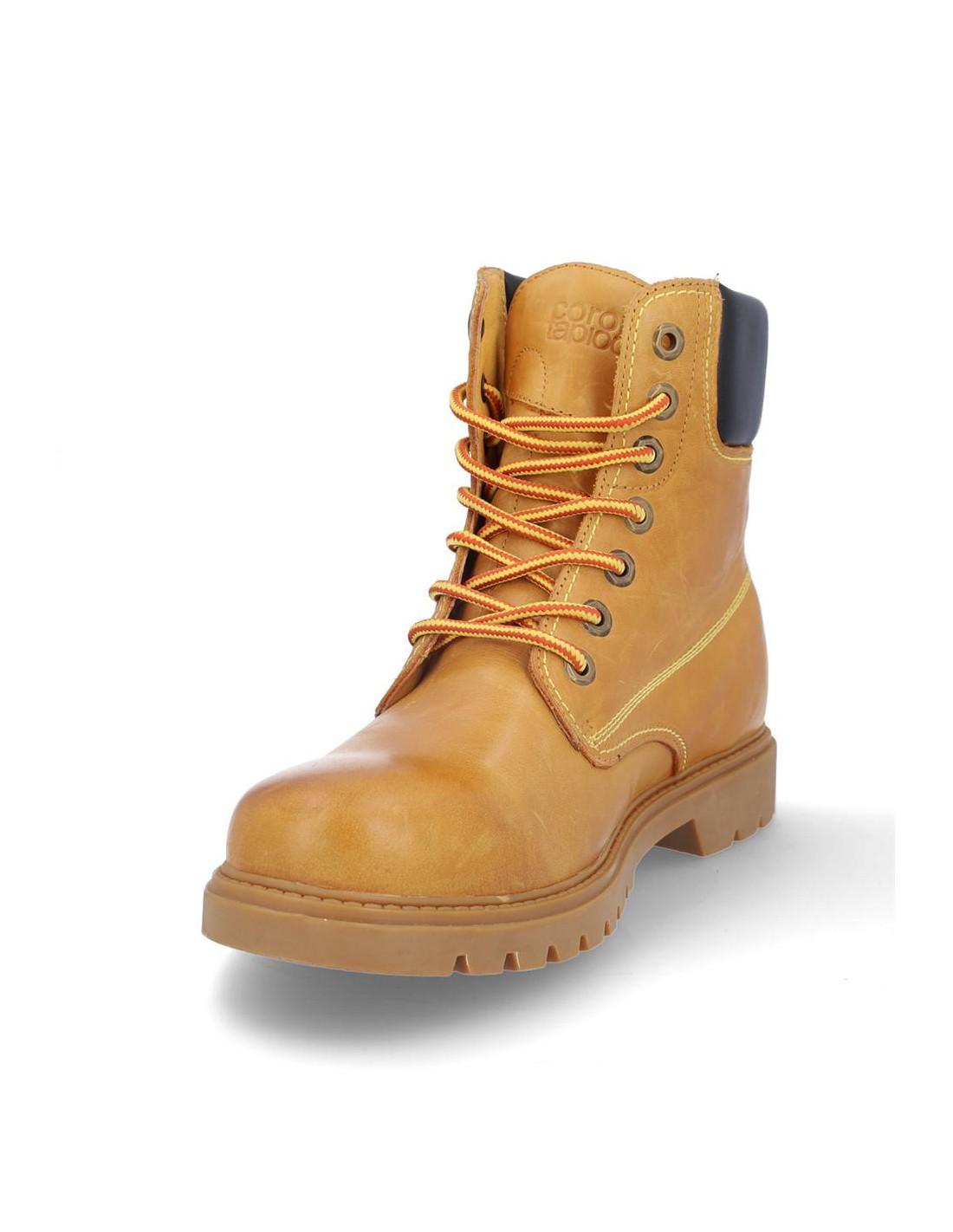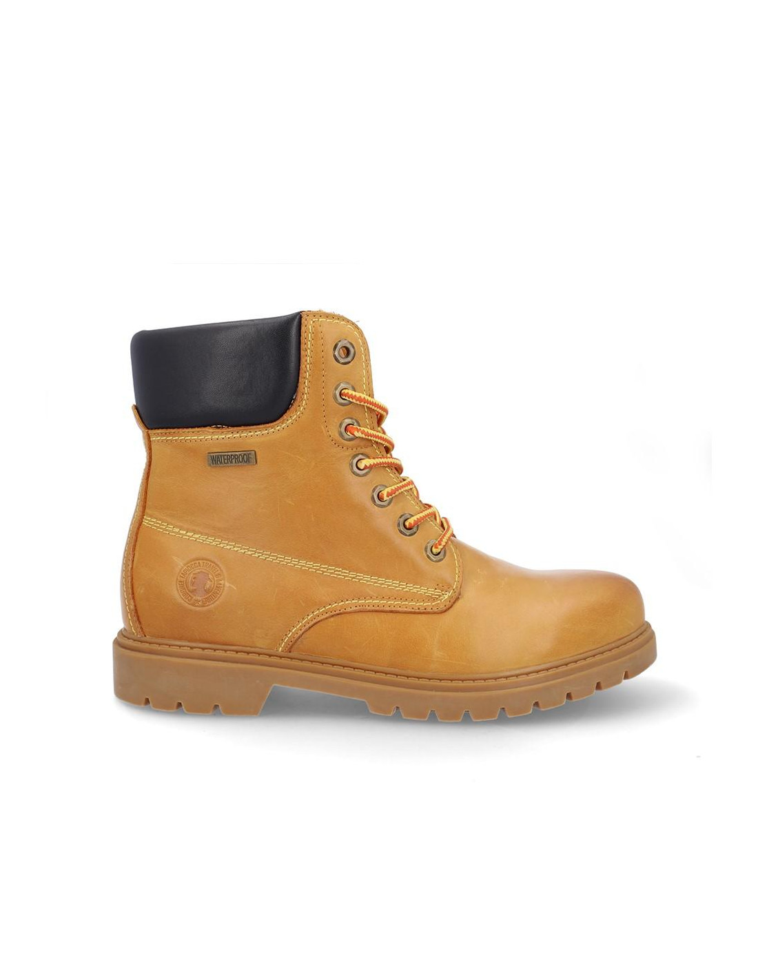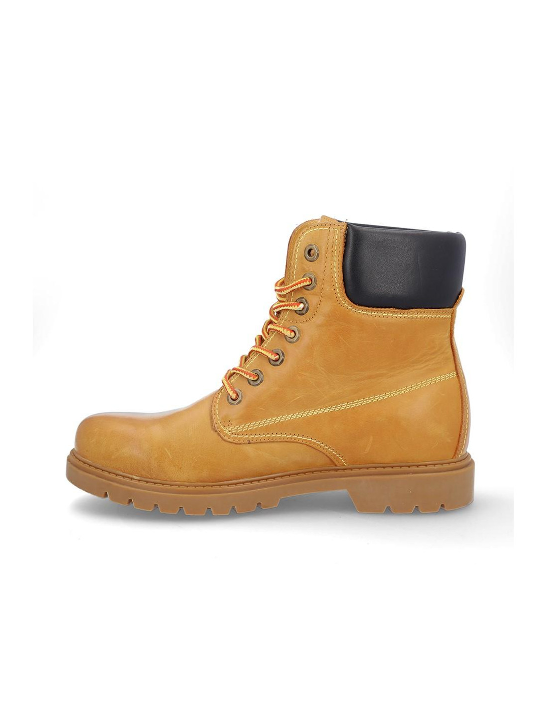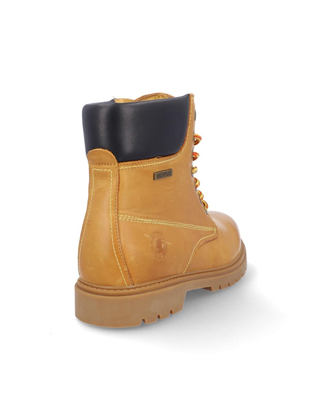 Botas caballero Coronel Tapiocca en piel mostaza con membrana WATERPROOF resistente al agua, cierre de cordones. Forro textil con vista de piel, plantilla textil, caña de 16 cm altura, suela con tacón de 3'5 cm y plataforma de 2 cm de plataforma. Composición: Empeine: Piel. Forro: Piel/Textil. Plantilla: Textil. Suela: Fibra sintética. Componente principal: Piel
