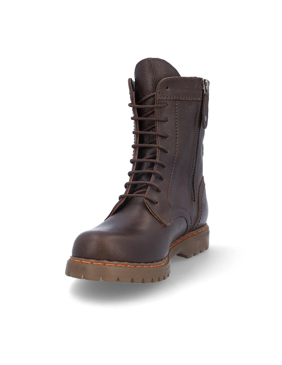 Botas de señora Coronel Tapiocca en piel marron. Cierre de cordones y cremallera interior, sin forro, plantilla textil extraible termoconformada, altura de caña 18 cm, suela con tacon de 3 cm y plataforma de 2 cm altura .Fabricado en España. Composición: Empeine: Piel . Fabricado en España. Composición: Empeine: Piel . Plantilla: Textil. Suela: Fibra sintetica. Componente principal: Piel