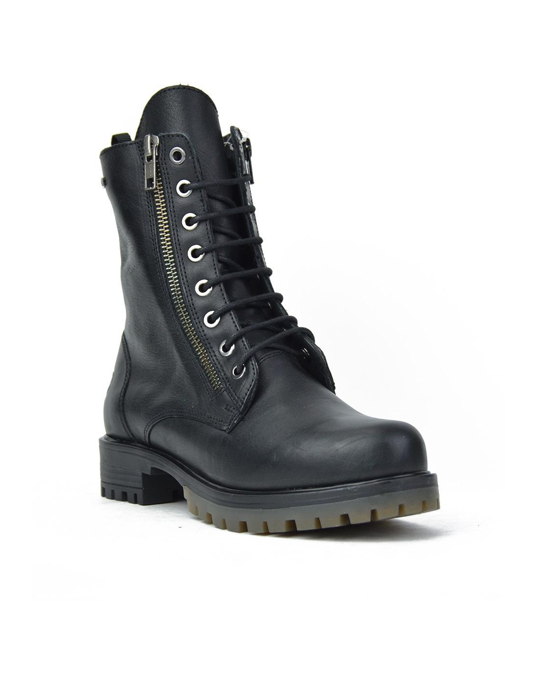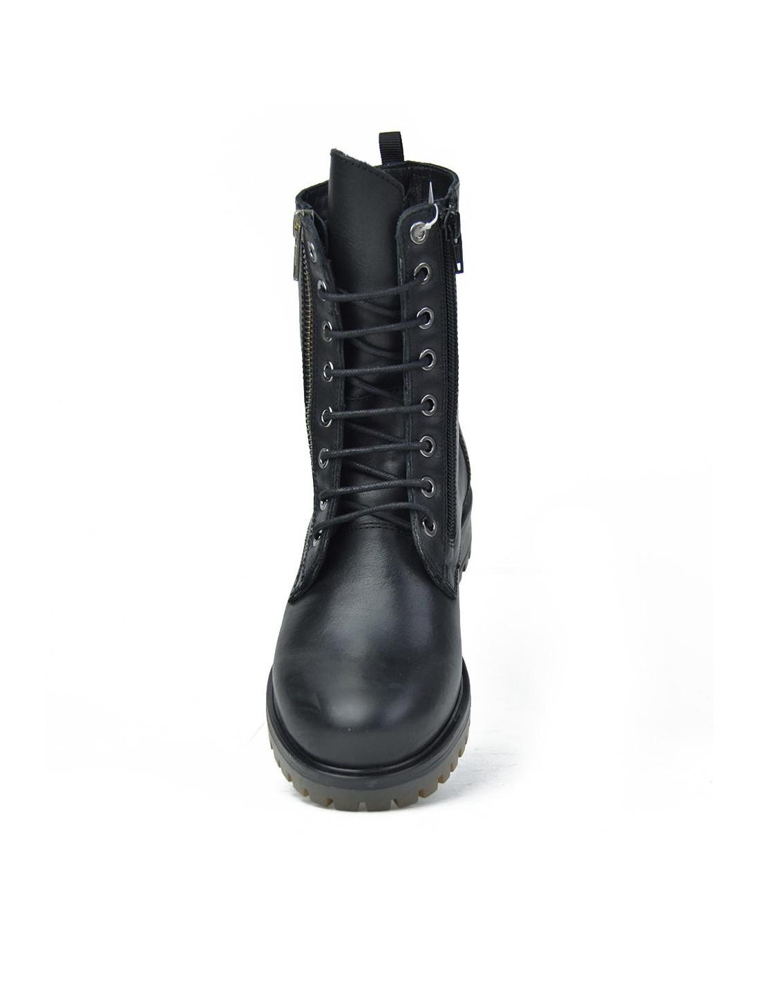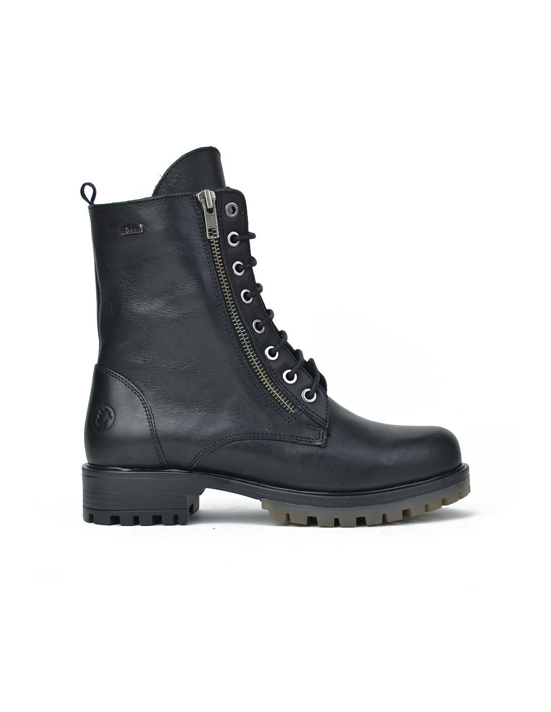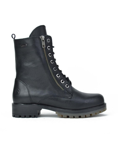 Botas de señora Coronel Tapiocca fabricados en piel negro de vacuno de primera calidad, forro combinado piel vacuno y tejido con membrana resistente al agua y tecnología XDRY, plantilla textil extraible termoconformada, caña de 17 cm altura, suela con tacón de 3,5 cm y plataforma de 2 cm, cierre de cordones y doble cremallera, fabricado en España. Composición: Empeine: Piel. Forro y plantilla: Textil. Suela: Fibra sintetica. Componente principal: Piel