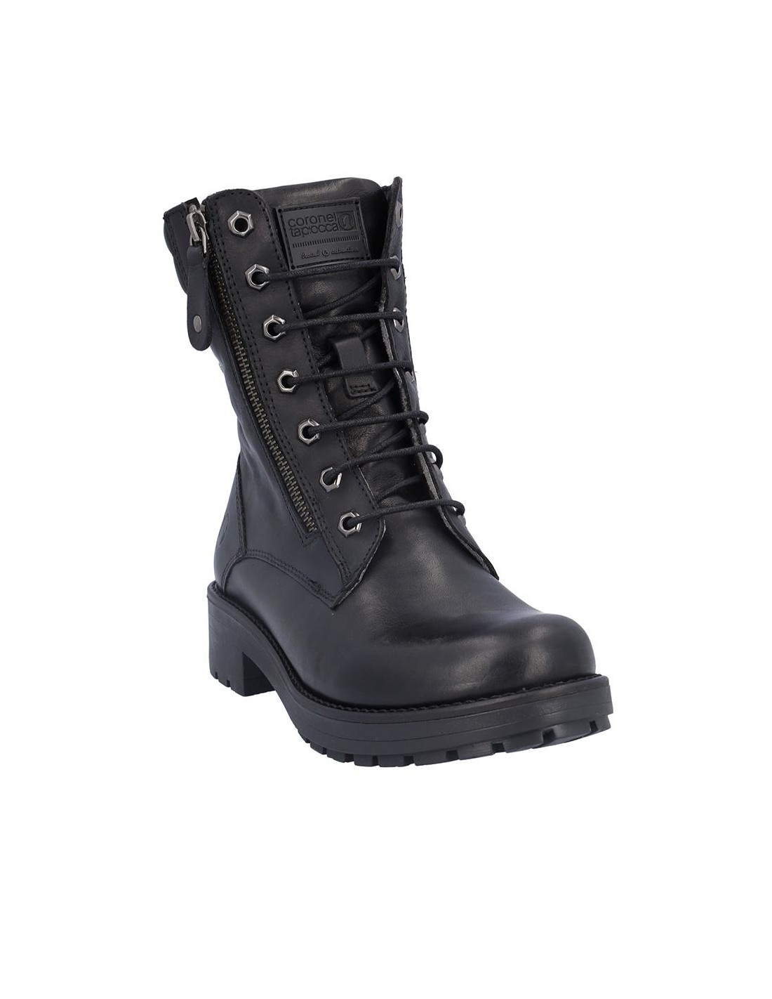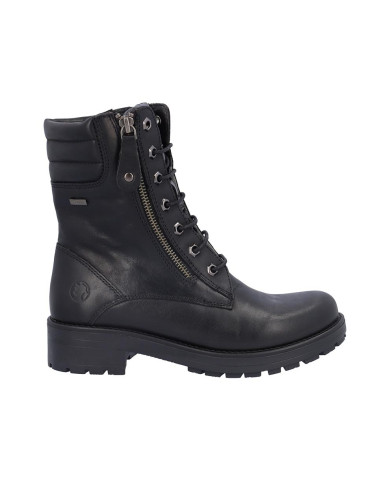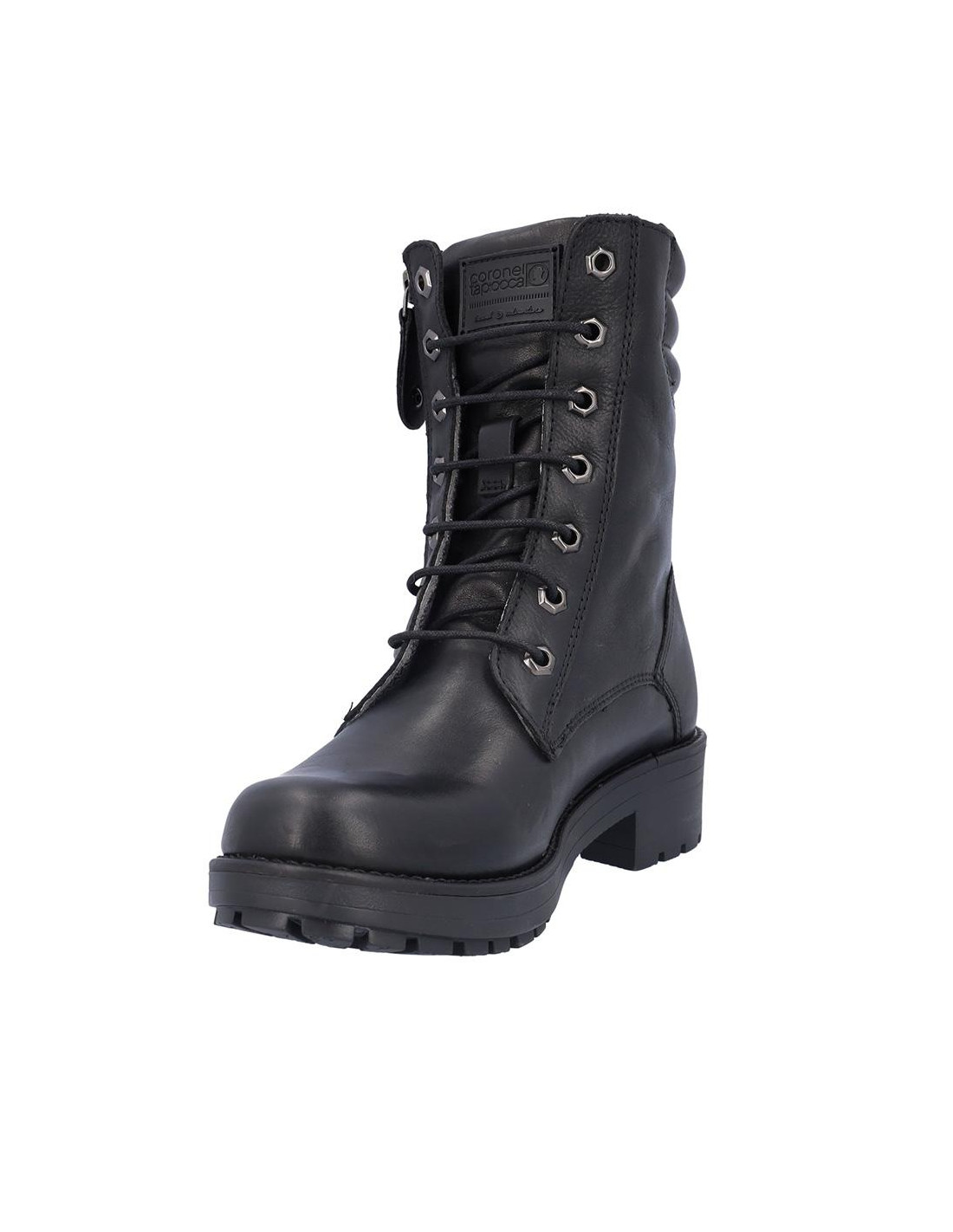 Botas de señora Coronel Tapiocca en piel color negro, con membrana resistente al agua y tecnología XDRY. Cierre de cordones y cremallera lateral. Forro textil con vista de piel, plantilla textil extraíble termoconformada, altura de caña 14 cm, suela con tacón de 4 cm y plataforma de 2 cm altura .Fabricado en España. Composición: Empeine: Piel. Forro: Piel/textil. Plantilla: Textil. Suela: Fibra sintética. Componente principal: Piel