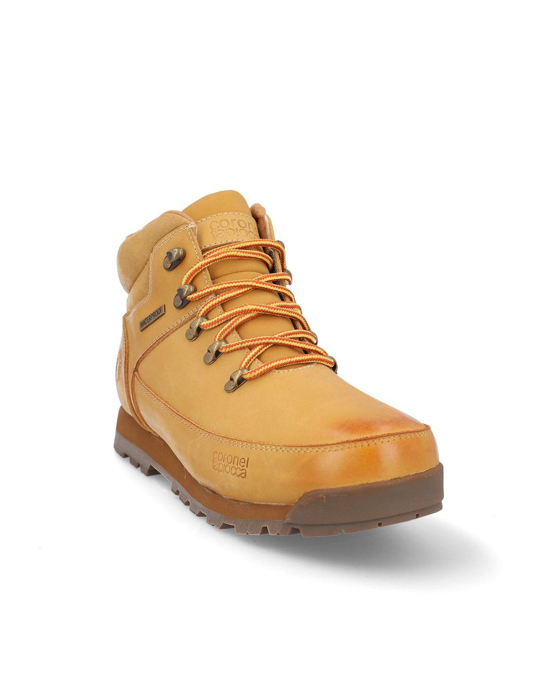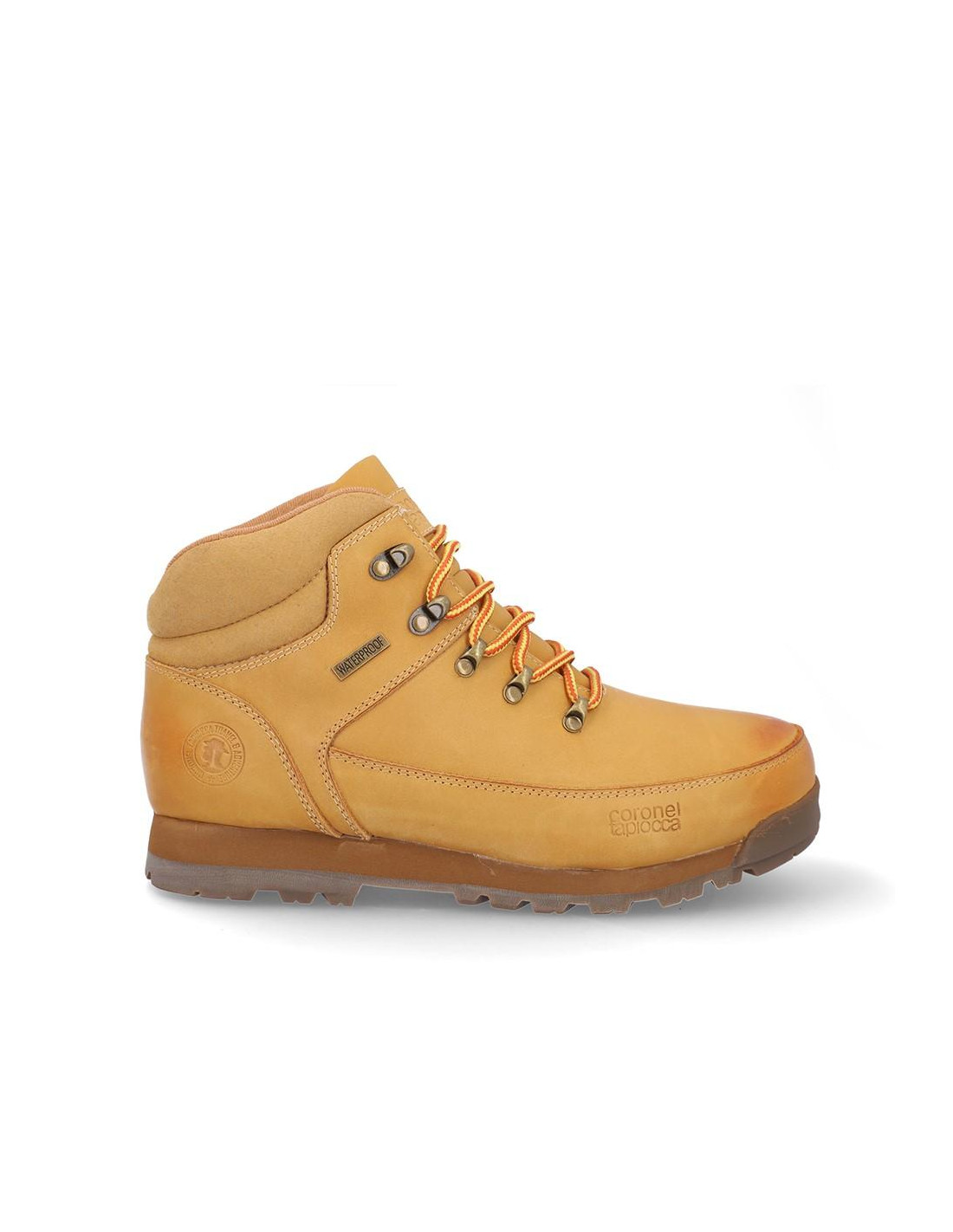 Botines caballero Coronel Tapiocca en piel mostaza con membrana waterproof resistente al agua, cierre de cordones. Forro textil, plantilla textil, caña de 14 cm altura, suela con tacón de 3 cm y plataforma de 1'5 cm de plataforma. Composición: Empeine: Piel. Forro: Piel/Textil. Plantilla: Textil. Suela: Fibra sintética. Componente principal: Piel