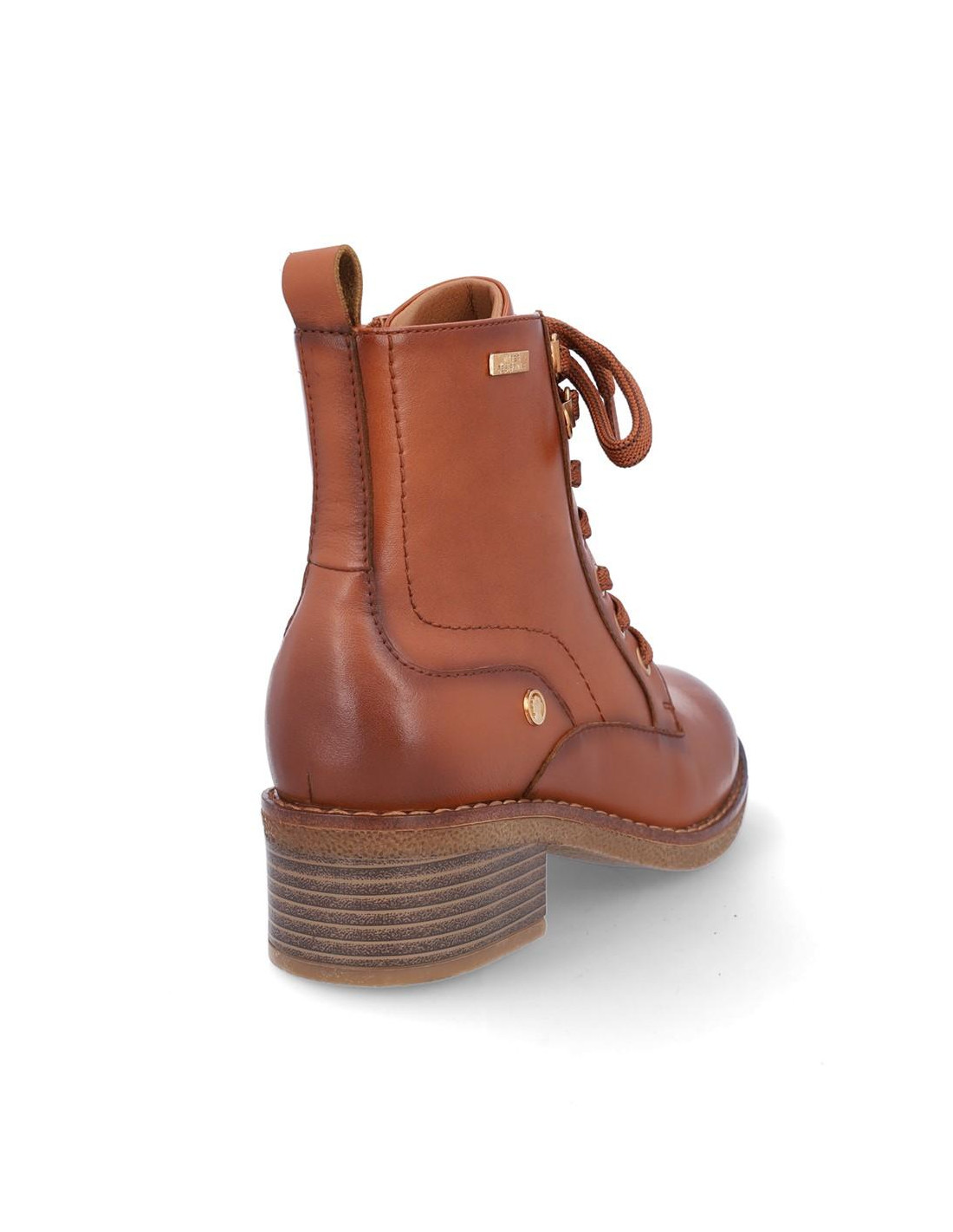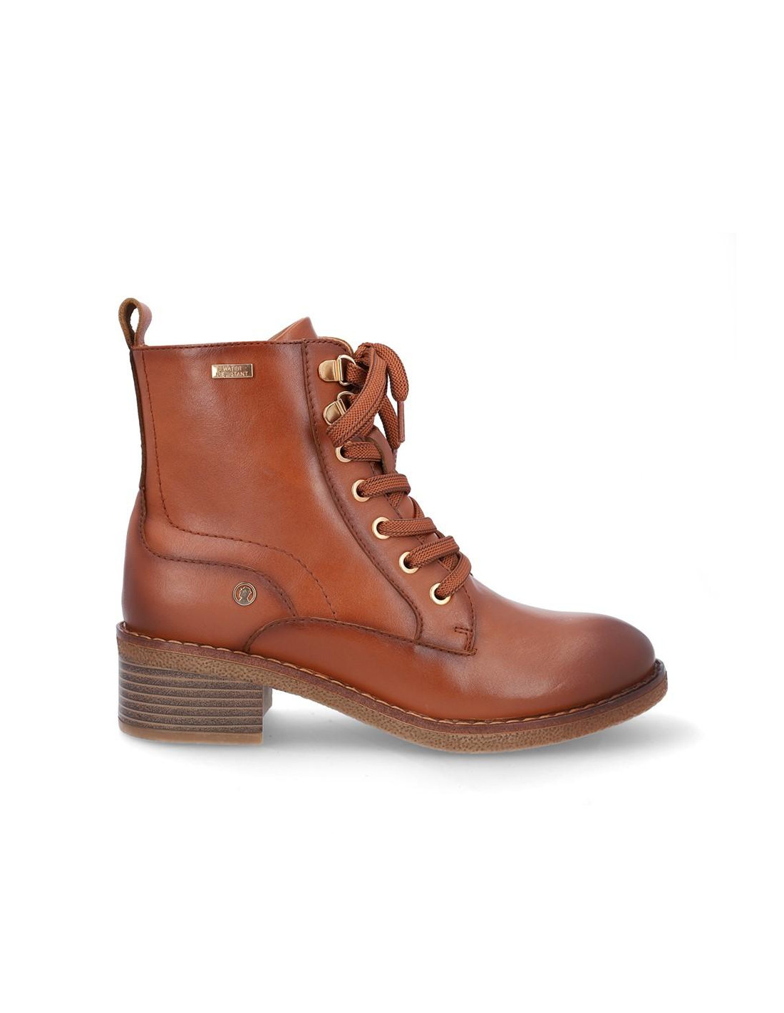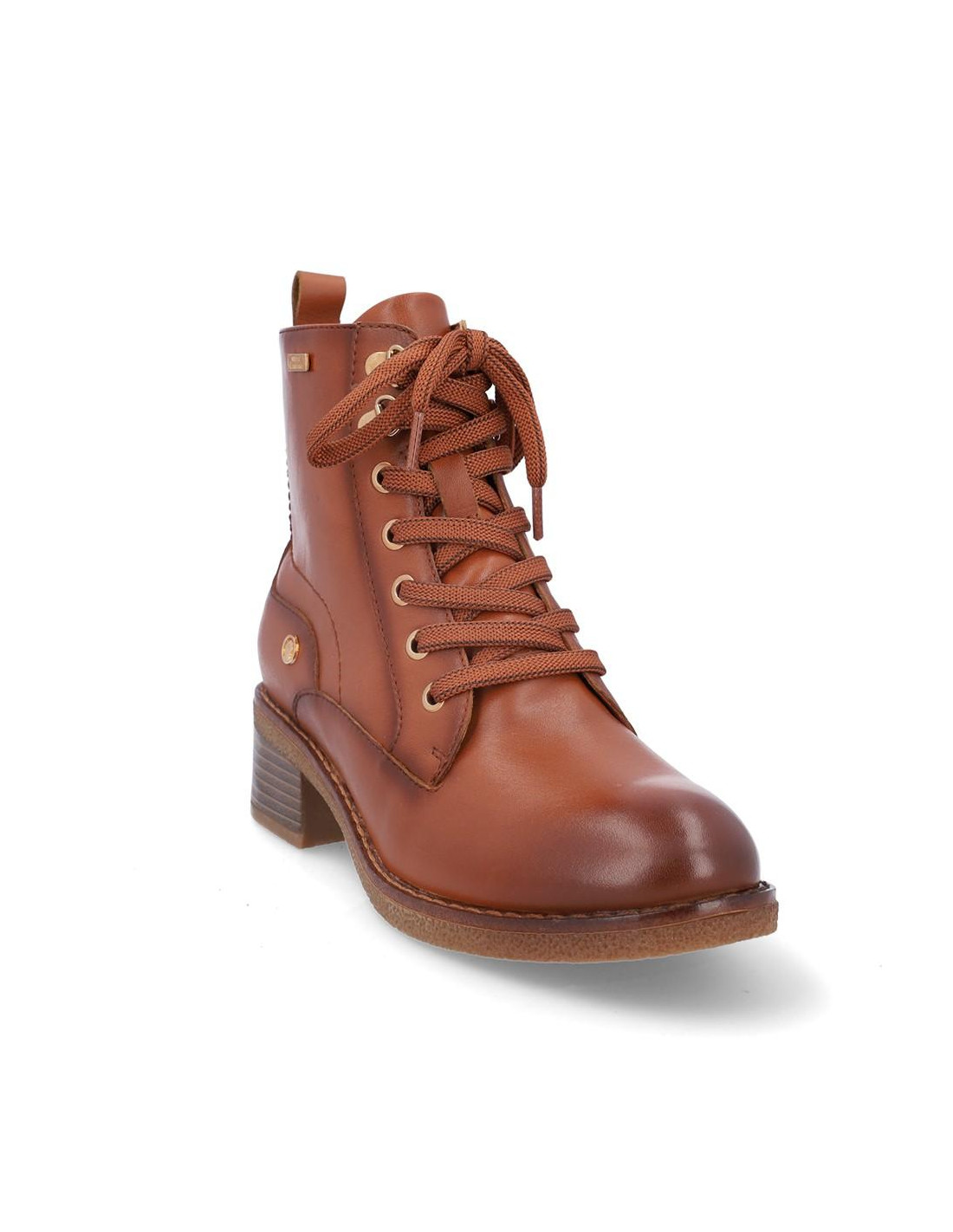 Botines de señora Coronel Tapiocca en piel color camel, resistente al agua, cierre de cordones y cremallera en parte interior para facilitar la puesta y retirada, Forro textil con vista de piel, plantilla textil, altura de caña 13 cm, suela con tacón de 5 cm y plataforma de 1'5 cm. Composición: Empeine: Piel. Forro: Textil/piel. Plantilla: Textil. Suela: Fibra sintética. Componente principal: Piel