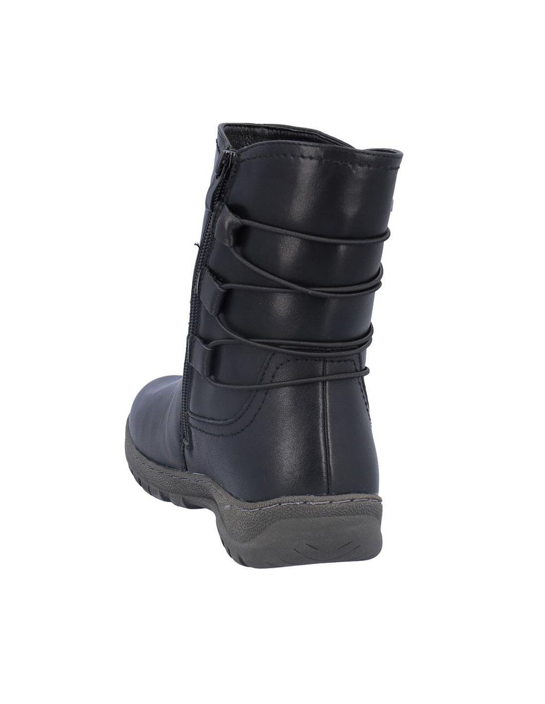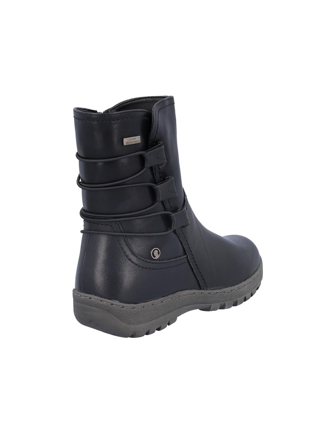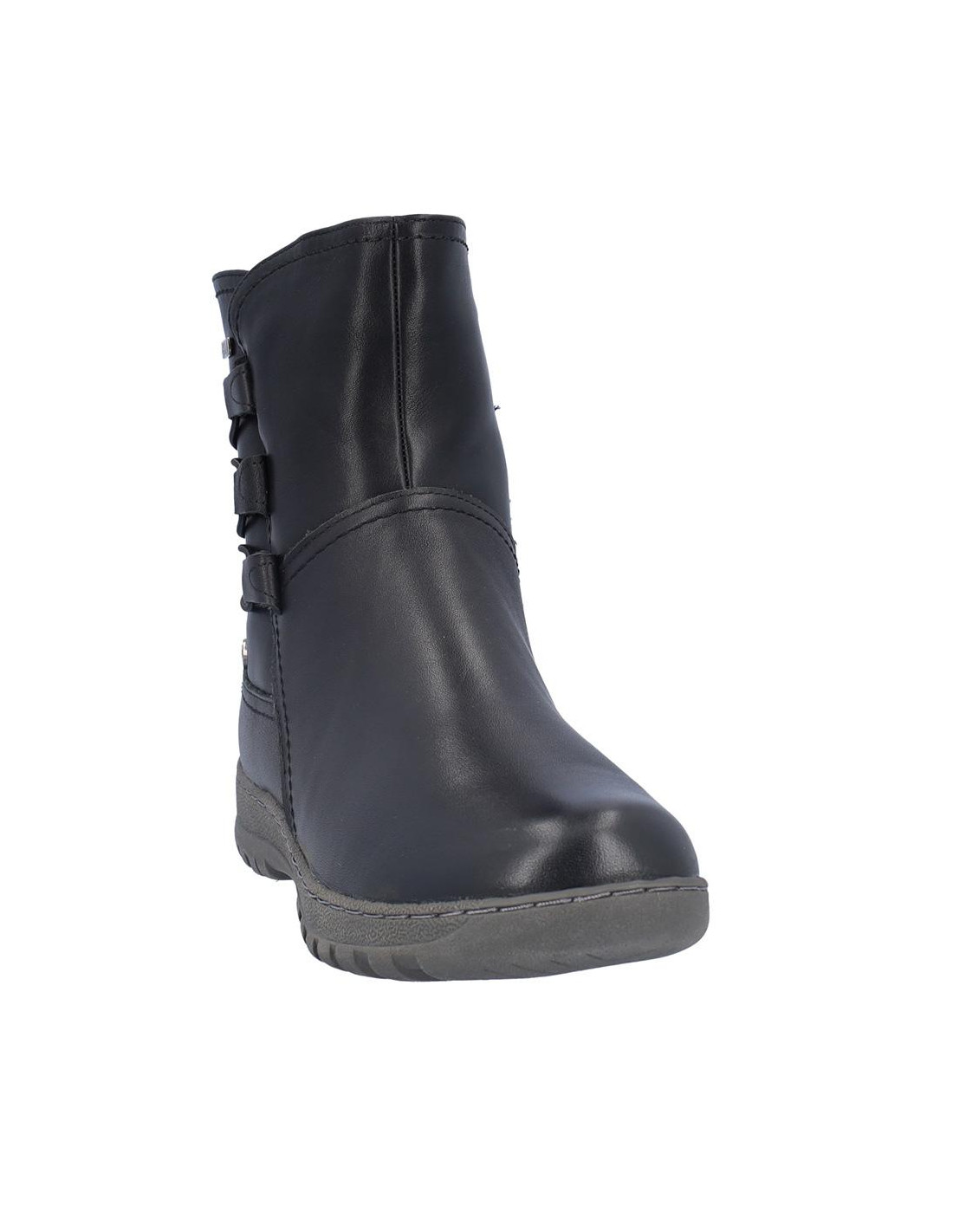 Botines impermeables de señora Coronel Tapiocca en piel color negro. Forro textil con vista de piel, plantilla textil, con cremallera en parte interior para facilitar la puesta y retirada, altura de caña 15 cm, suela de 3 cm. Composición: Empeine: Serrajel. Forro: Piel/textil. Plantilla: textil. Suela: Fibra sintética. Componente principal: Serraje