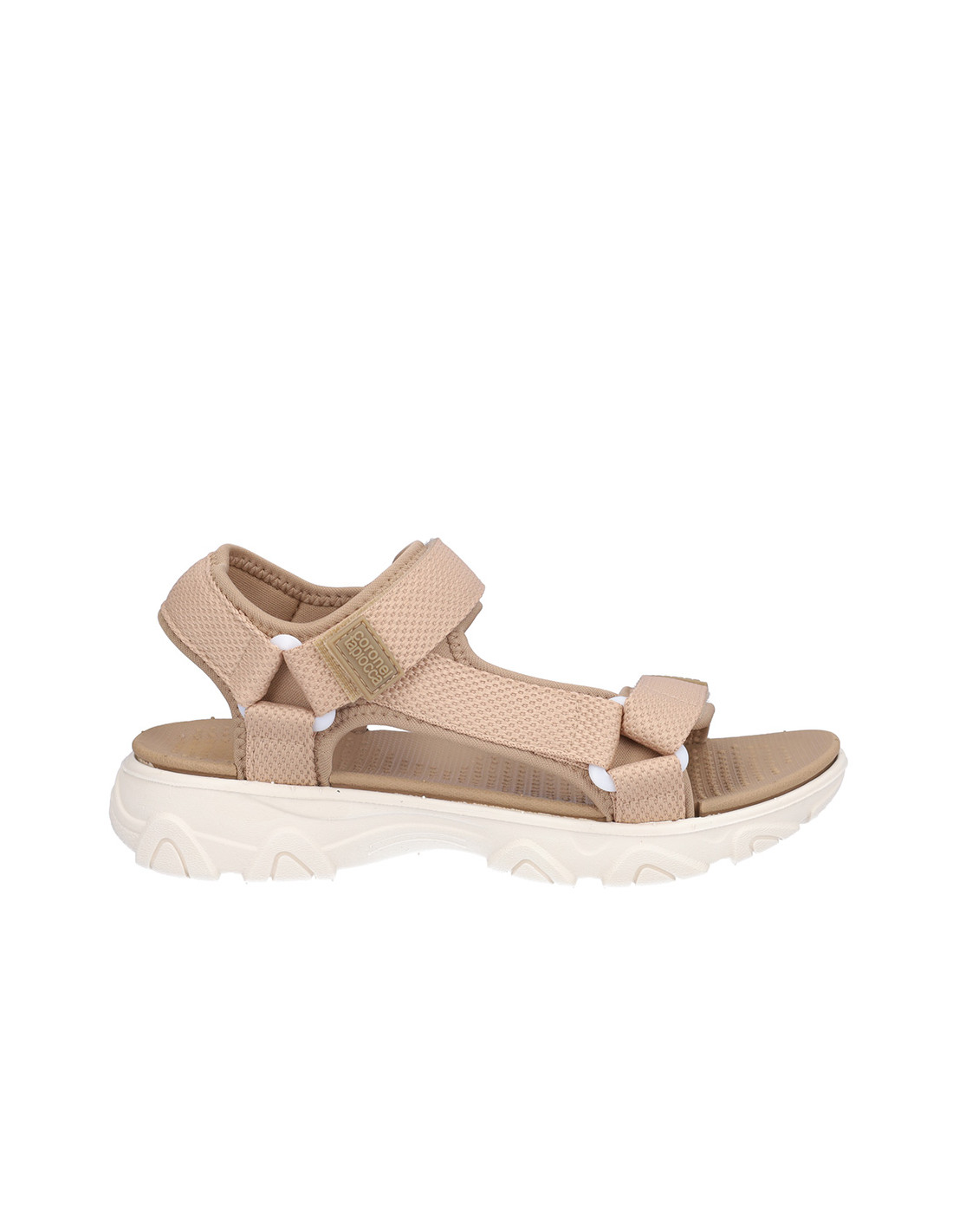 Sandalia señora Coronel Tapiocca textil beige, cierre de velcros, forro textil, planta y suela de phylon con altura de 3,5 cm. Composición: Empeine: Textil. Forro: Textil. Planta y suela: Phylon.