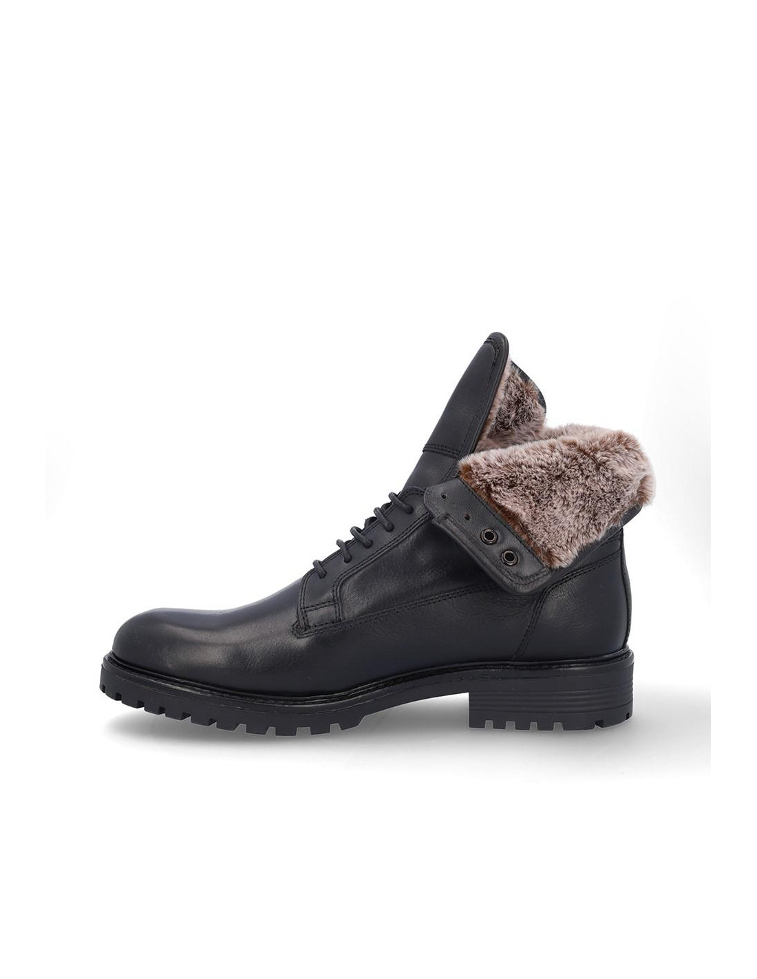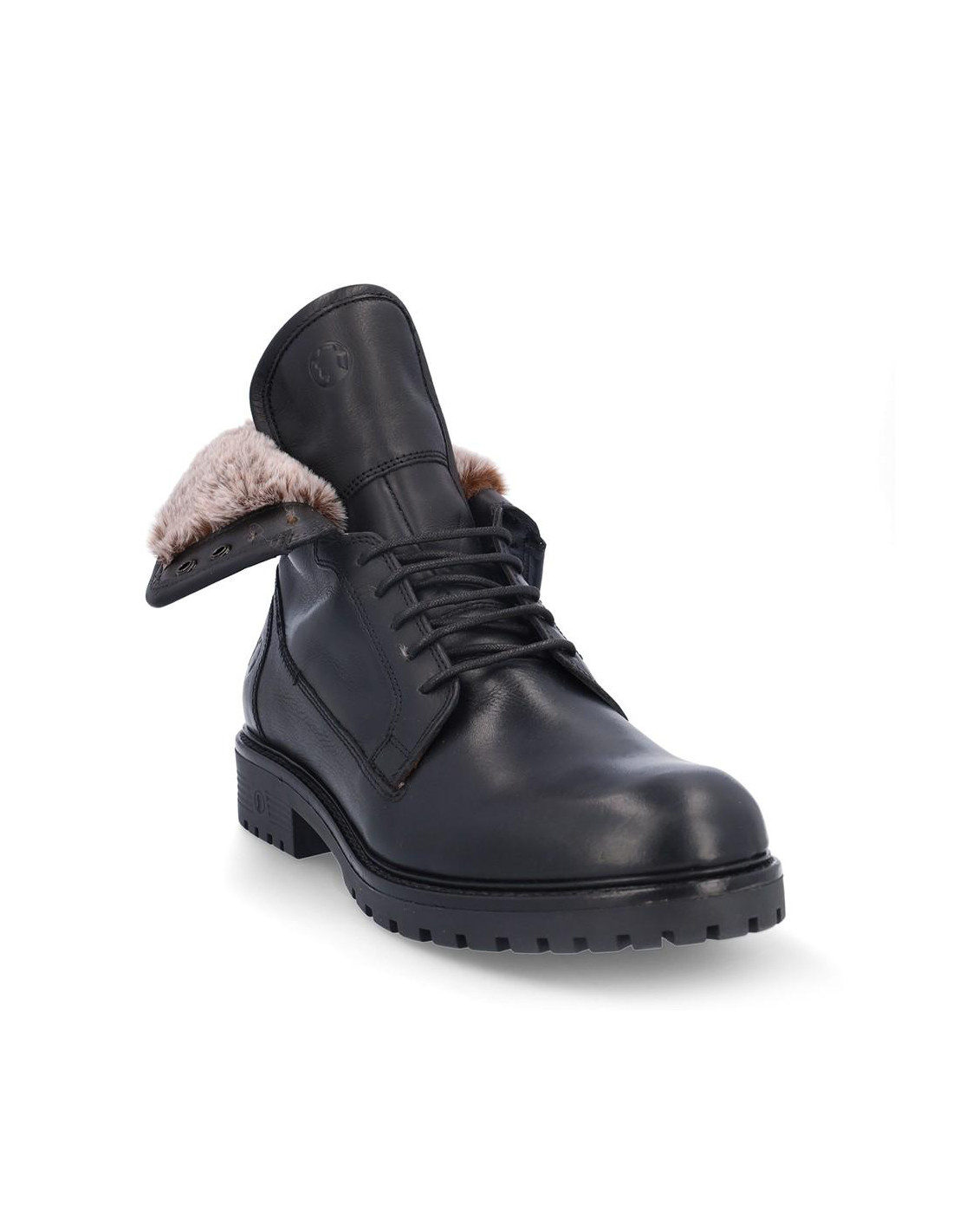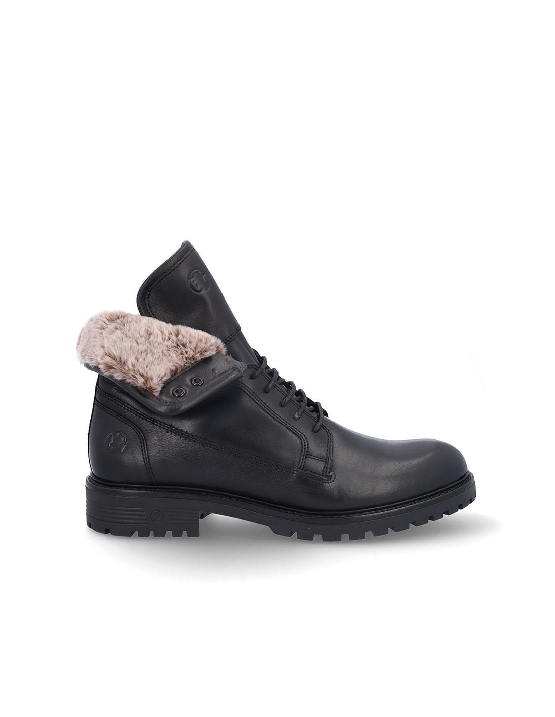 Botas caballero Coronel Tapiocca fabricadas en piel negro, cierre con cordones, forro combinado pelo y textil, plantilla textil extraible, caña de 16 cm altura, suela con tacon de 4 cm y plataforma de 2 cm de plataforma, fabricadas en España. Composición: Empeine: Piel. Forro: Pelo/textil. Plantilla: Textil. Suela: Fibra sintetica. Componente principal: Piel