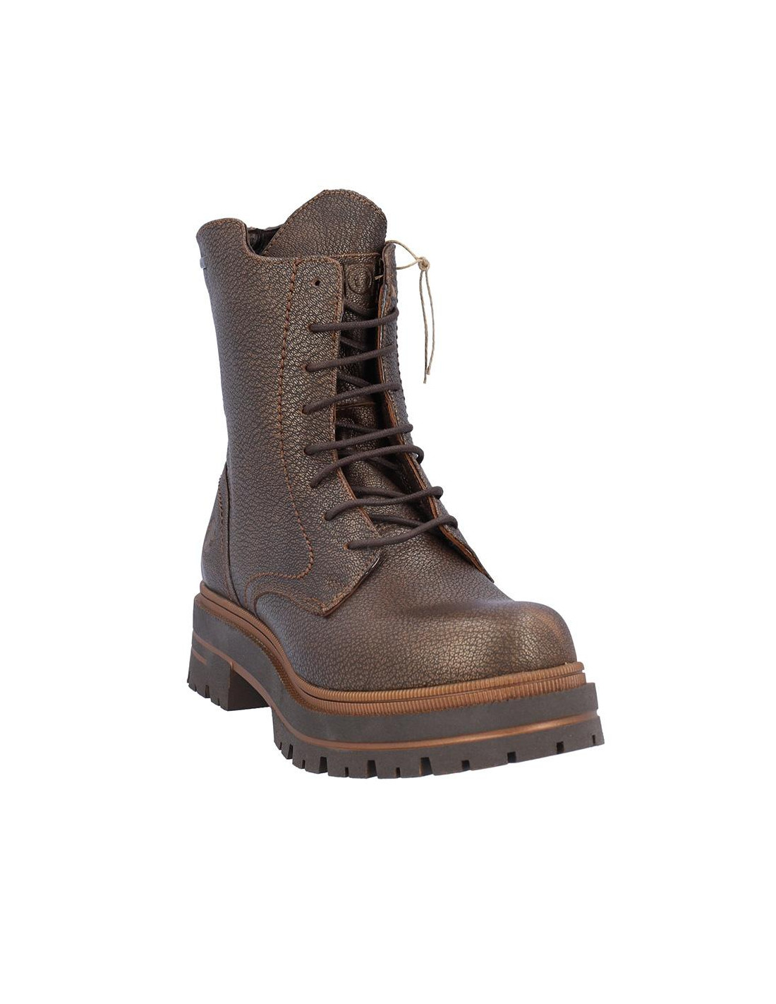 Botas de señora Coronel Tapiocca en piel metalizado bronce, con membrana resistente al agua y tecnología XDRY. Cierre de cordones y cremallera interior para facilitar la puesta y retirada del producto. Forro textil con vista de piel, plantilla textil extraible termoconformada, altura de caña 17 cm, suela con tacon de 5 cm y plataforma de 3'5 cm altura .Fabricado en España. Composición: Empeine: Piel . Forro: Piel/textil. Plantilla: Textil. Suela: Fibra sintetica. Componente principal: Piel