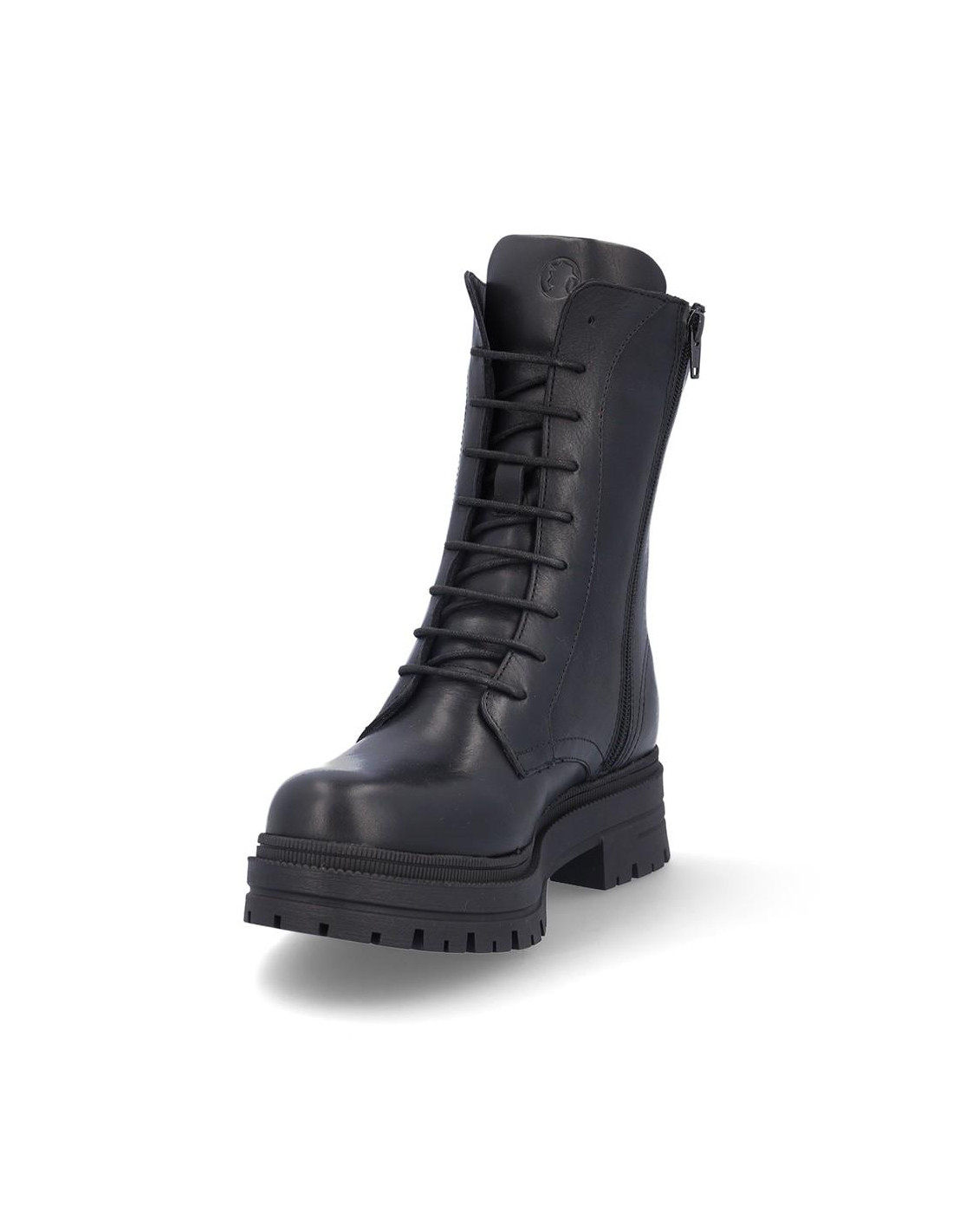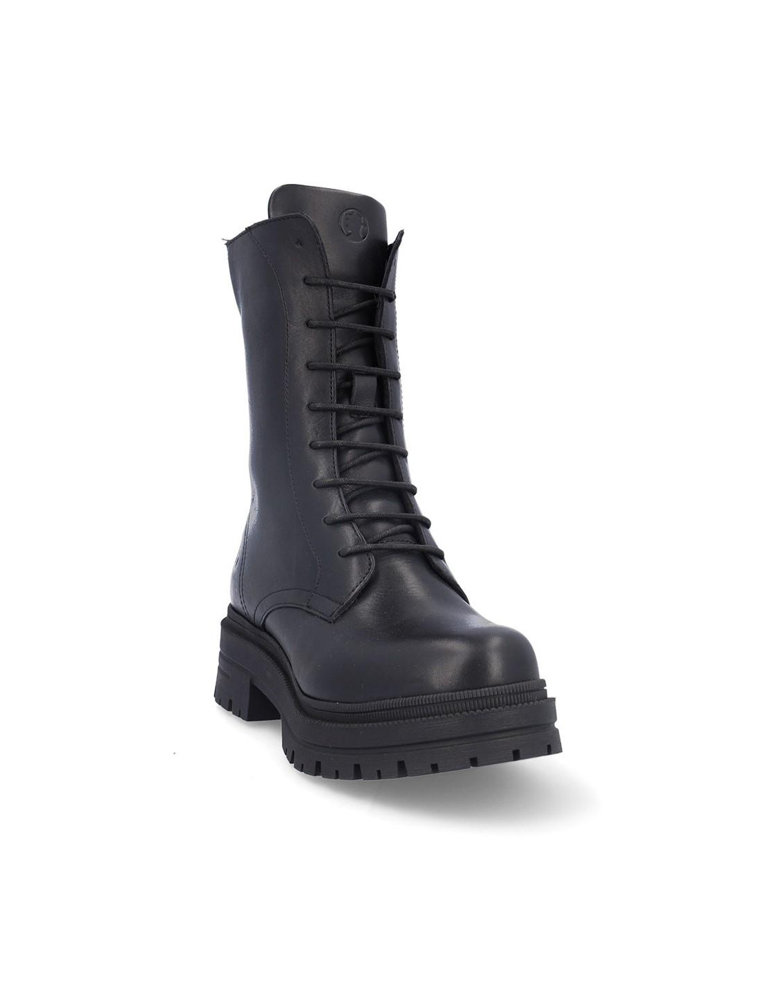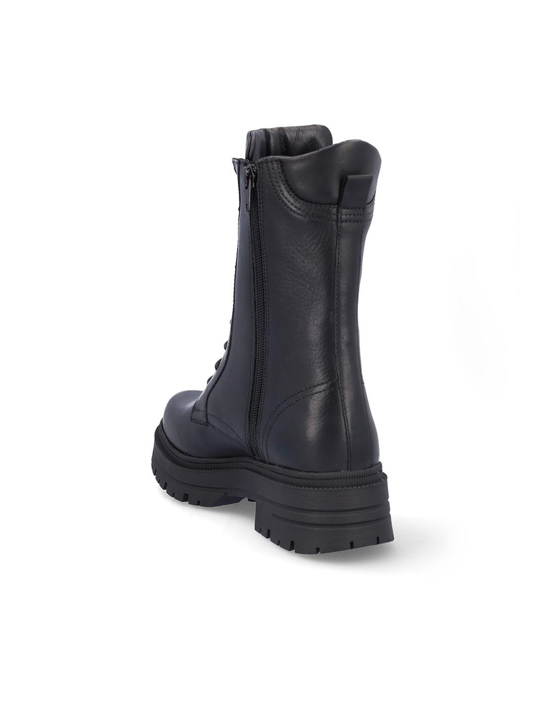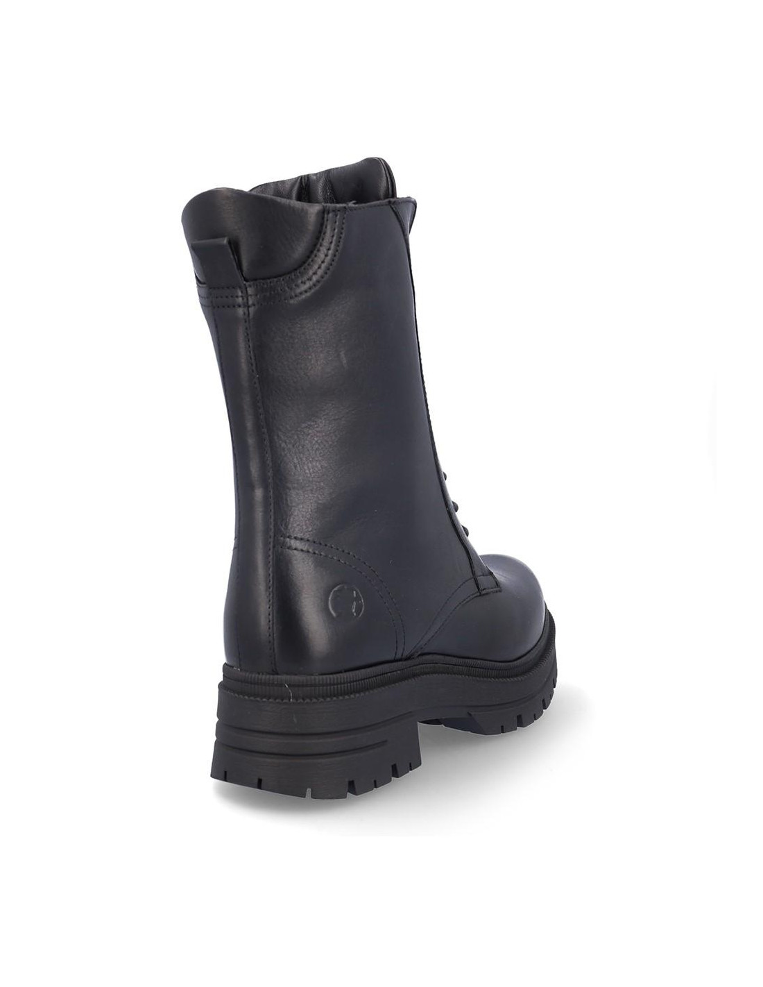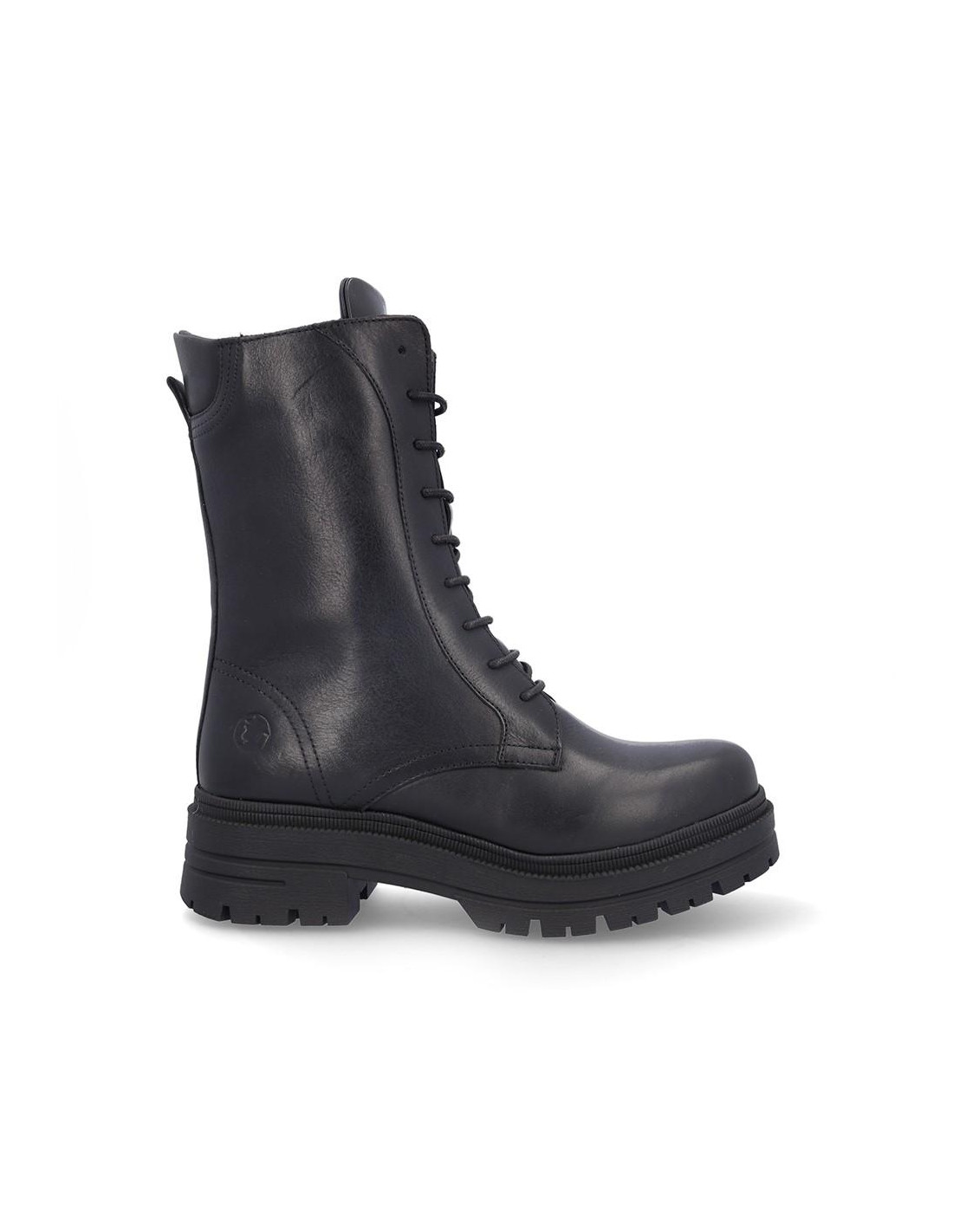 Botas de señora Coronel Tapiocca fabricados en piel negro, cierre con cordones y cremallera en parte interior para facilitar la puesta y retirada del producto. Forro textil con vista de piel, plantilla textil extraible termoconformada, altura de caña 20 cm, suela con tacón de 5 cm y plataforma de 3'5 cm de altura. Fabricado en España. Composición: Empeine: Piel . Forro: Piel/textil. Plantilla: Textil. Suela: Fibra sintetica. Componente principal: Piel