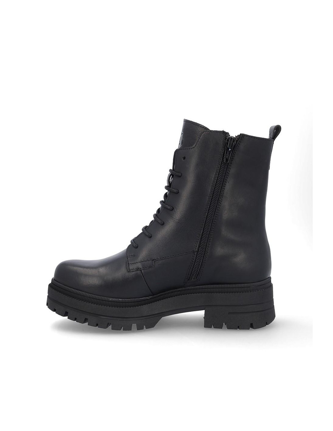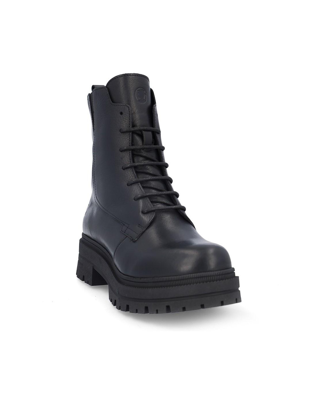 Botas de señora Coronel Tapiocca fabricados en piel color negro, cierre con cordones y cremallera en parte interior para facilitar la puesta y retirada del producto. Forro textil con vista de piel, plantilla textil extraible termoconformada, altura de caña 18 cm, suela con tacón de 5 cm y plataforma de 3'5 cm de altura. Fabricado en España. Composición: Empeine: Piel . Forro: Piel/textil. Plantilla: Textil. Suela: Fibra sintetica. Componente principal: Piel