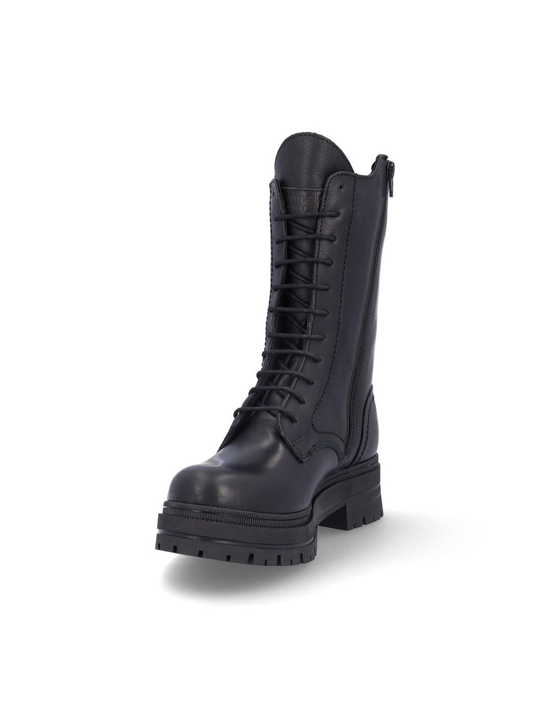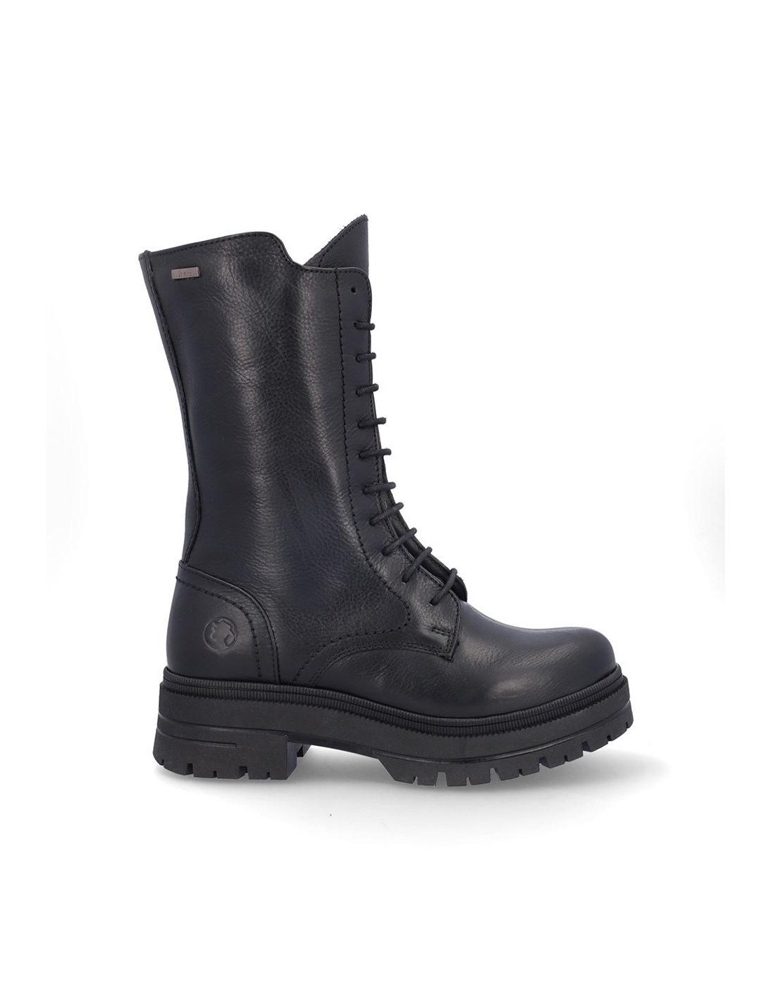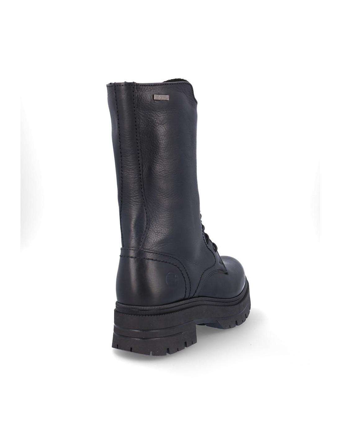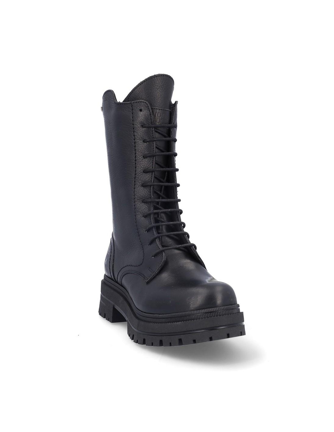 Botas de señora Coronel Tapiocca en piel color negro, con membrana resistente al agua y tecnología XDRY. Cierre de cordones y cremallera interior para facilitar la puesta y retirada del producto. Forro textil con vista de piel, plantilla textil extraible termoconformada, altura de caña 23'5 cm, suela con tacon de 5 cm y plataforma de 3'5 cm altura .Fabricado en España. Composición: Empeine: Piel . Forro: Piel/textil. Plantilla: Textil. Suela: Fibra sintetica. Componente principal: Piel