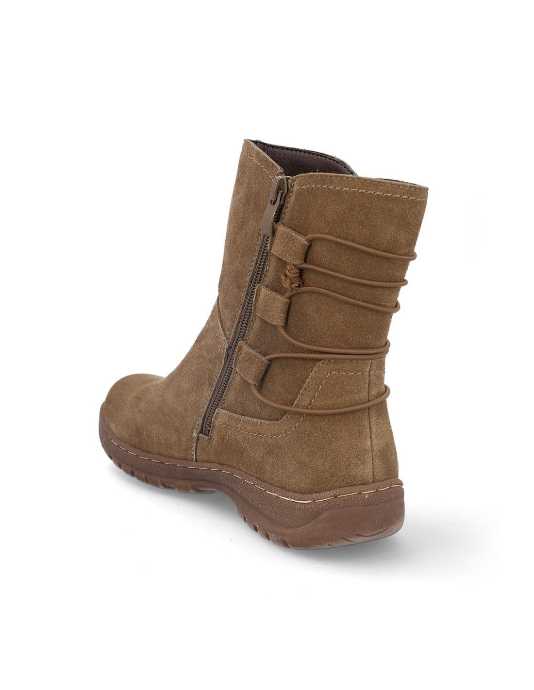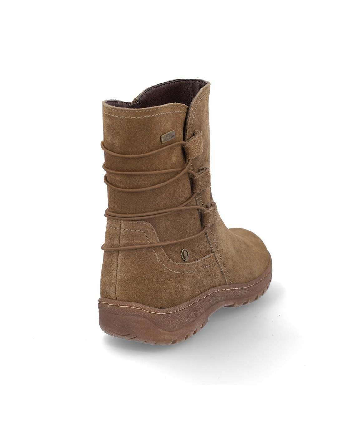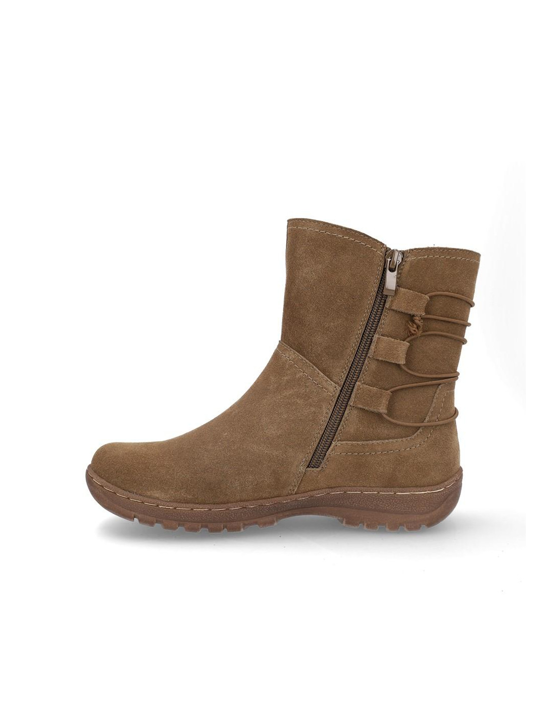 Botines impermeables de señora Coronel Tapiocca en serraje color arena. Forro textil con vista de piel, plantilla textil, con cremallera en parte interior para facilitar la puesta y retirada, altura de caña 15 cm, suela de 3 cm. Composición: Empeine: Serraje. Forro: Piel/textil. Plantilla: textil. Suela: Fibra sintética. Componente principal: Serraje