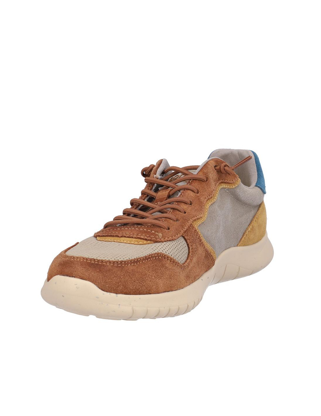 Zapatillas de caballero Coronel Tapiocca en piel/textil combinado multicolor cuero/ice, cierre de cordones, forro textil, plantilla textil extraible, suela ligera de 2,5 cm altura. Composición: Empeine: Piel/textil. Forro y plantilla: Textil. Suela: Eva