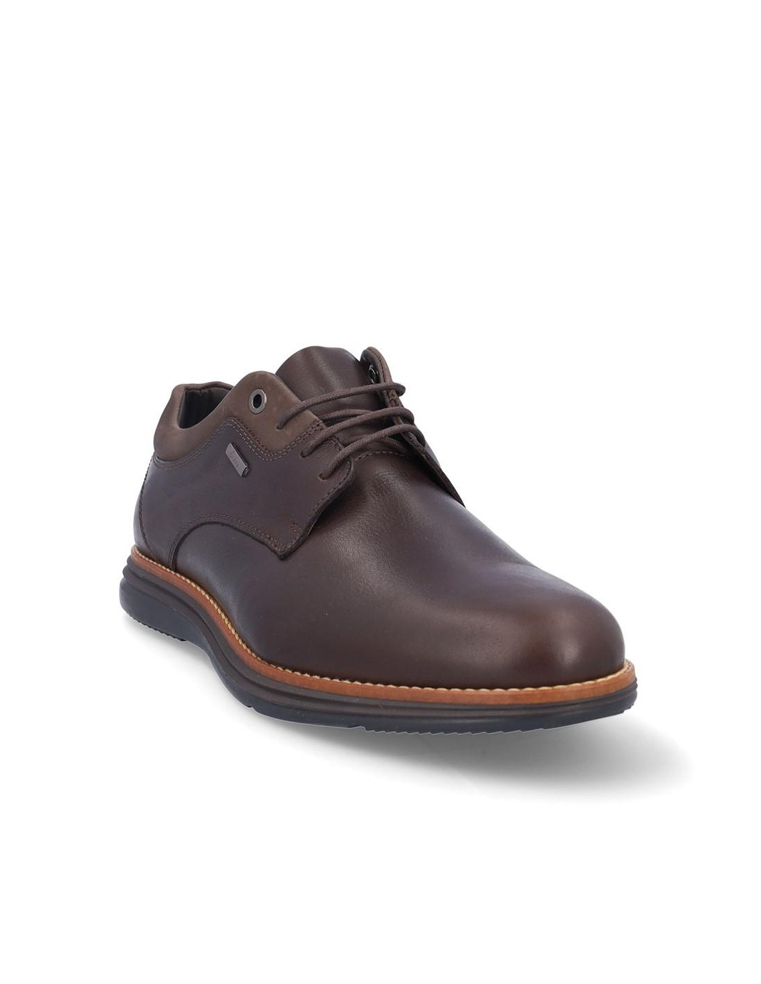 Zapato de caballero Coronel Tapiocca en piel marron, con membrana resistente al agua y tecnología XDRY. Cierre de cordones. Forro textil con vista de piel, plantilla textil extraible termoconformada, suela de 3 cm altura con vira melope piel pespunteada. Fabricado en España. Composición: Empeine: Piel . Forro: Piel/textil. Plantilla: Textil. Suela: Fibra sintetica. Componente principal: Piel