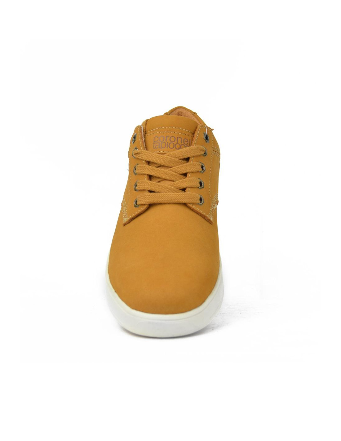 Zapato caballero Coronel Tapiocca en nobuck meloconton, cierre de cordones, forro textil con membrana resistente al agua y tecnología waterproof, plantilla textil extraible termoconformada, suela de 3 cm altura. Composición: Empeine: Piel. Forro y plantilla: Textil. Suela: phylon ligero y goma en planta. Componente principal: Piel
