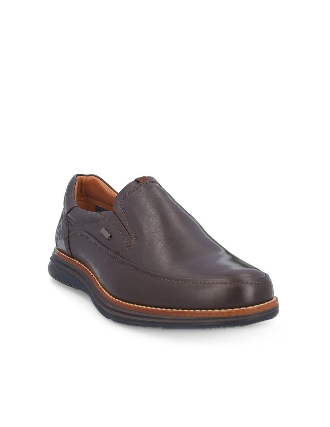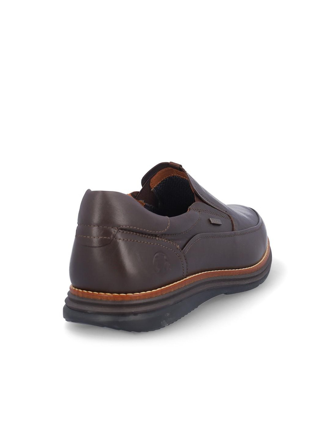Mocasin de caballero Coronel Tapiocca en piel marron, con membrana resistente al agua y tecnología XDRY. Con elastico en los lados para facilitar la puesta y retirada. Forro textil con vista de piel, plantilla textil extraible termoconformada, suela de 3 cm altura, con vira melope pespunteada. Fabricado en España. Composición: Empeine: Piel . Forro: Piel/textil. Plantilla: Textil. Suela: Fibra sintetica. Componente principal: Piel
