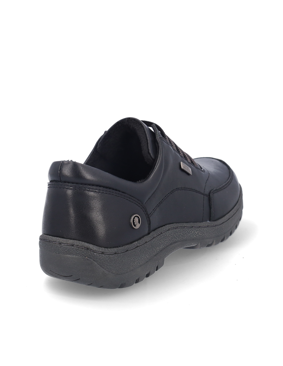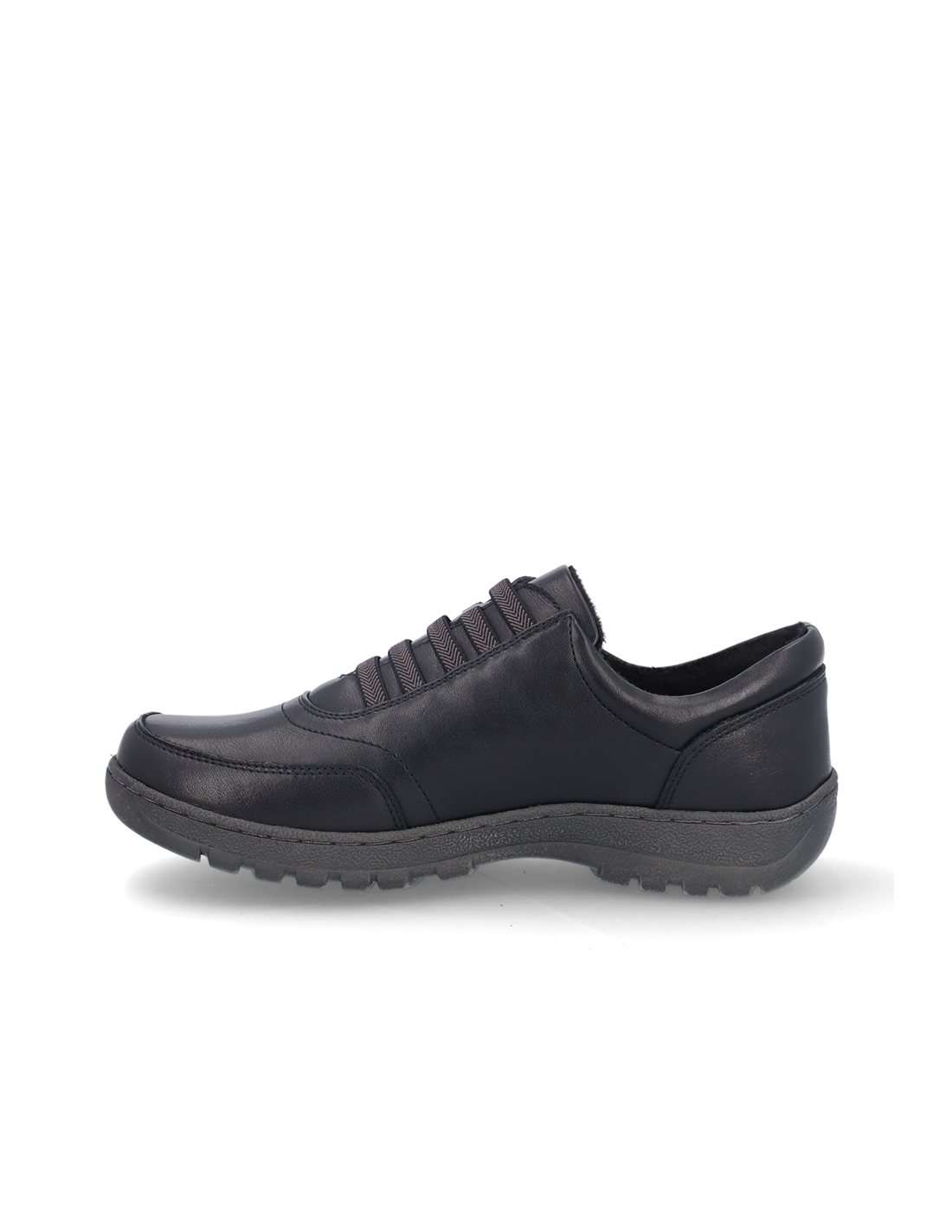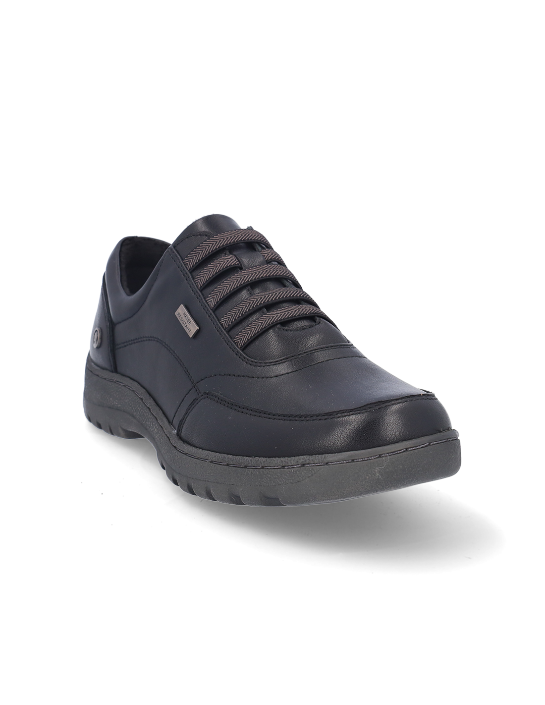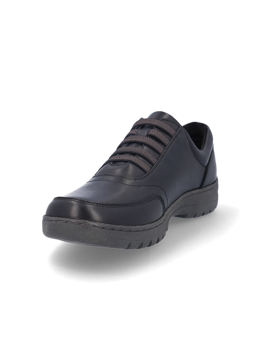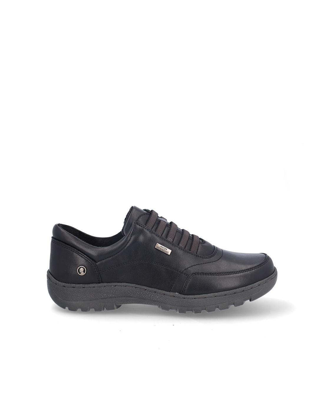 Zapatos de señora Coronel Tapiocca en piel color negro resistente al agua. Cierre con cordones elasticos, forro textil, plantilla textil extraible termoconformada, suela de 3 cm de altura. Composición: Empeine: Piel. Forro: Textil. Plantilla: textil. Suela: Fibra sintética. Componente principal: Piel